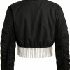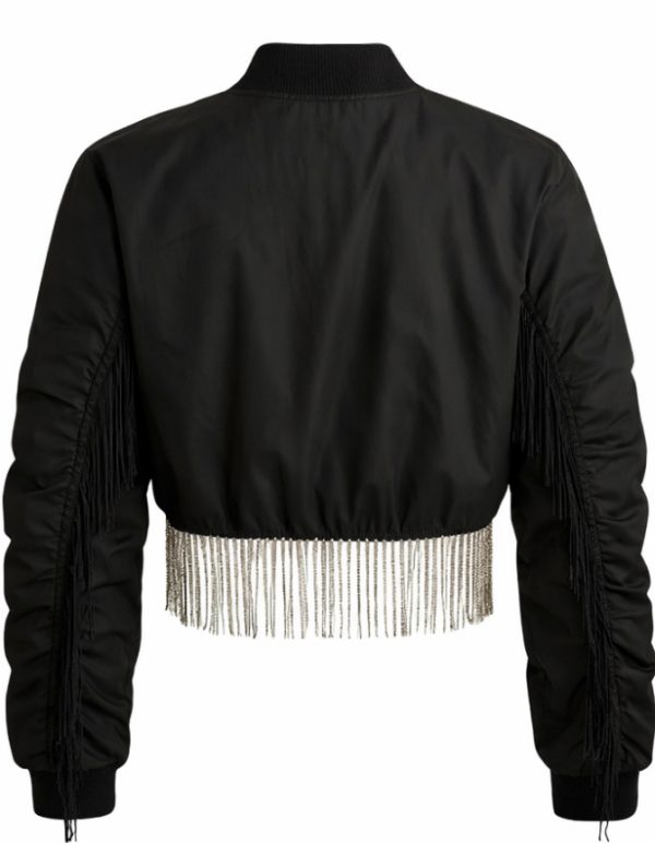 All eyes on you — and this jacket makes sure of it. The Keeping It Snazzy Cropped Jacket: Round 2 is the ultimate statement piece with its sleek satin-like finish, sparkling silver tassel trim, and ultra-dramatic fringe down both arms. Designed to move with power and presence, this piece brings serious energy whether you’re on the street, the stage, or the screen.