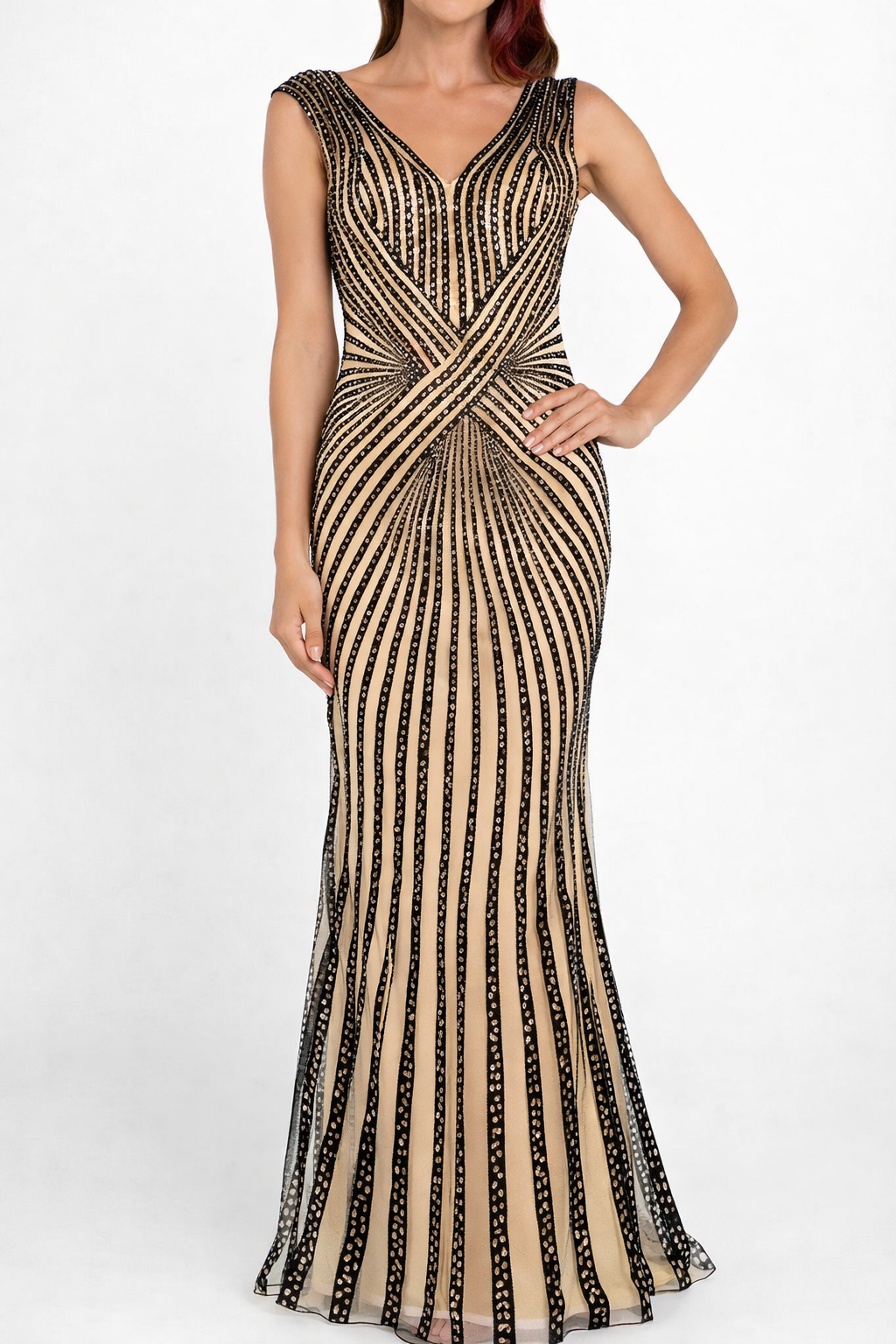 The MIDNIGHT EMPRESS GOWN doesn’t enter quietly—it takes over. Every step, every turn, every detail is intentional. Designed with a sculpted, body-contouring silhouette and a soft V-neckline, this gown flows effortlessly while hugging in all the right places. The intricate beaded detailing creates a radiant, elongating effect that catches the light from every angle, while the open back adds just the right touch of allure. Lightweight, breathable, and made to move with you, it delivers elegance without effort. Regal. Striking. Unforgettable.